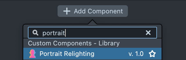 With the newly created object selected, click on the Add Component button in the Inspector Panel and select Portrait Relighting.