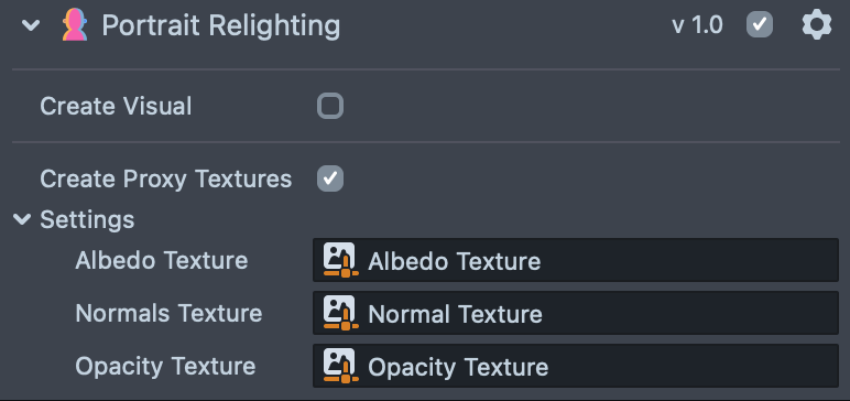 The Create Proxy Textures setting allows you to plug in textures into the Portrait Relighting Component. The easiest way to do this is to use Proxy Textures (empty textures).