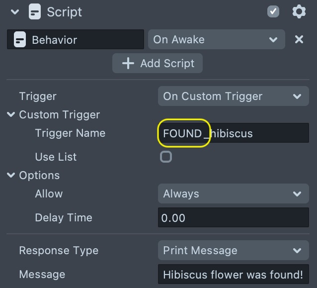 - OnFoundPrefix: a string added to the name of a found class to form a custom Behavior trigger name