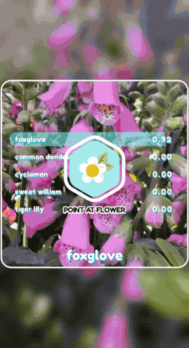 The Multi Class Classification Template enables you to create your own Multi Class Classification Machine Learning model, quantize it and use it to trigger different effects in Lens Studio. This template comes with a Flower Classification model that allows users to classify flowers images into one of 103 classes, visualize the topK classes and their probabilities and trigger some effects once certain class is found.