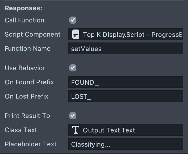 - Placeholder Text: text to display when none of the classes' probability is passing the probability threshold.
