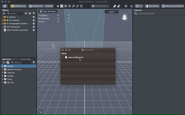 You can drag and drop your .onnx file into the Resources panel to bring it into Lens Studio.