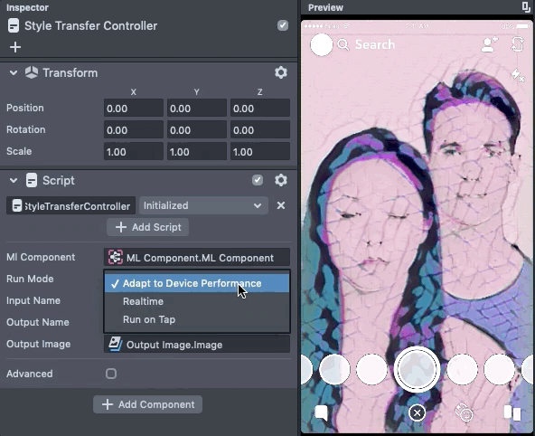 - Adapt to Device Performance: Depending on the device, the style transfer will run in Realtime or On Demand