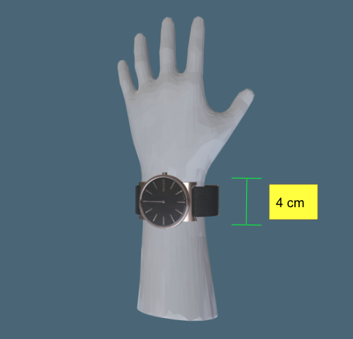 For optimal wristwear tracking and detection, it is recommended to place 3D models along the wrist up to 4 centimeters (cm). Detection and tracking will degrade as you move further down the wrist into the forearm. See below for optimal tracking and detection areas: