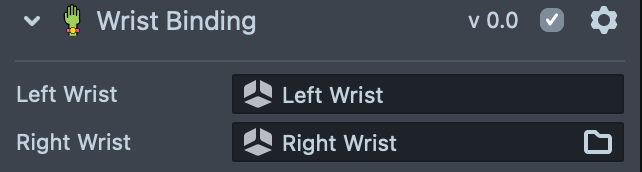 Add the Script to the scene and use the Inspector Panel to set the wristBinding input field to reference the Wrist Binding Custom Component that is also in the scene.