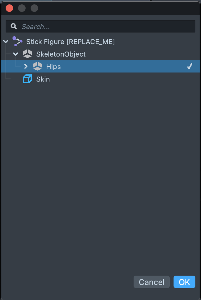 Alternatively, it is also possible to attach individual objects, rather than a skeleton rig to the body. You can simply attach separate objects for the user’s joints and that will work just fine.