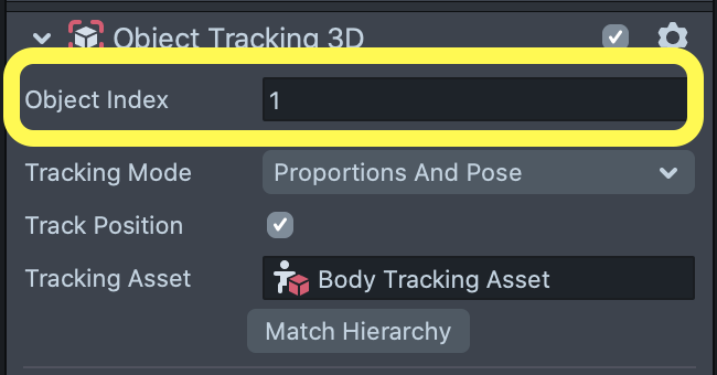 To see this all in action, make sure that you still have the Two People Dancing 1 preview in the Preview panel, select the body tracking scene objects and see that one of the components has the Object Index property set to 0, another to 1. 0 being the first person detected, and 1 being the second person detected, and so forth.
