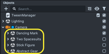 Next, let's take a look at the Dancing Mark Example. In the DancingMark example, you'll notice that we have our character detached from the Snapchatter. There are two settings in the Object Tracking 3D Component found in the Object Tracking 3D object to look at when wanting to do this: Track Position, and Tracking Mode.