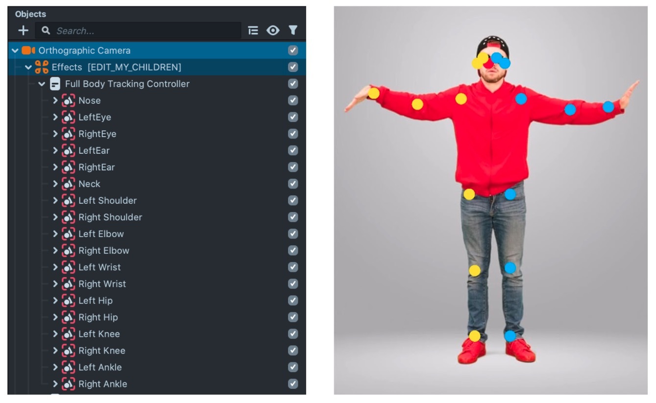 The Full Body Tracking provides 2D screen points that represent user’s joints / parts of the body. It is the basis of this template.
