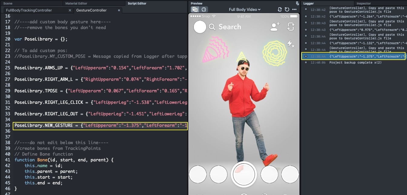 Then you can copy the printed message and paste it into the GestureLibrary script and create your own pose!