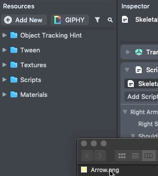 To use the template, we’ll first need to import the images we want to attach to the joints. To do this, drag and drop a PNG, JPG or GIF into the Resources panel from your computer.