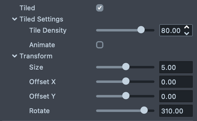- Animate: If enabled, the tile pattern will play a scrolling animation