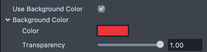 To enable a solid background color, make sure the Use Background Color checkbox is checked. Once enabled, you’re able to tune the color and transparency.