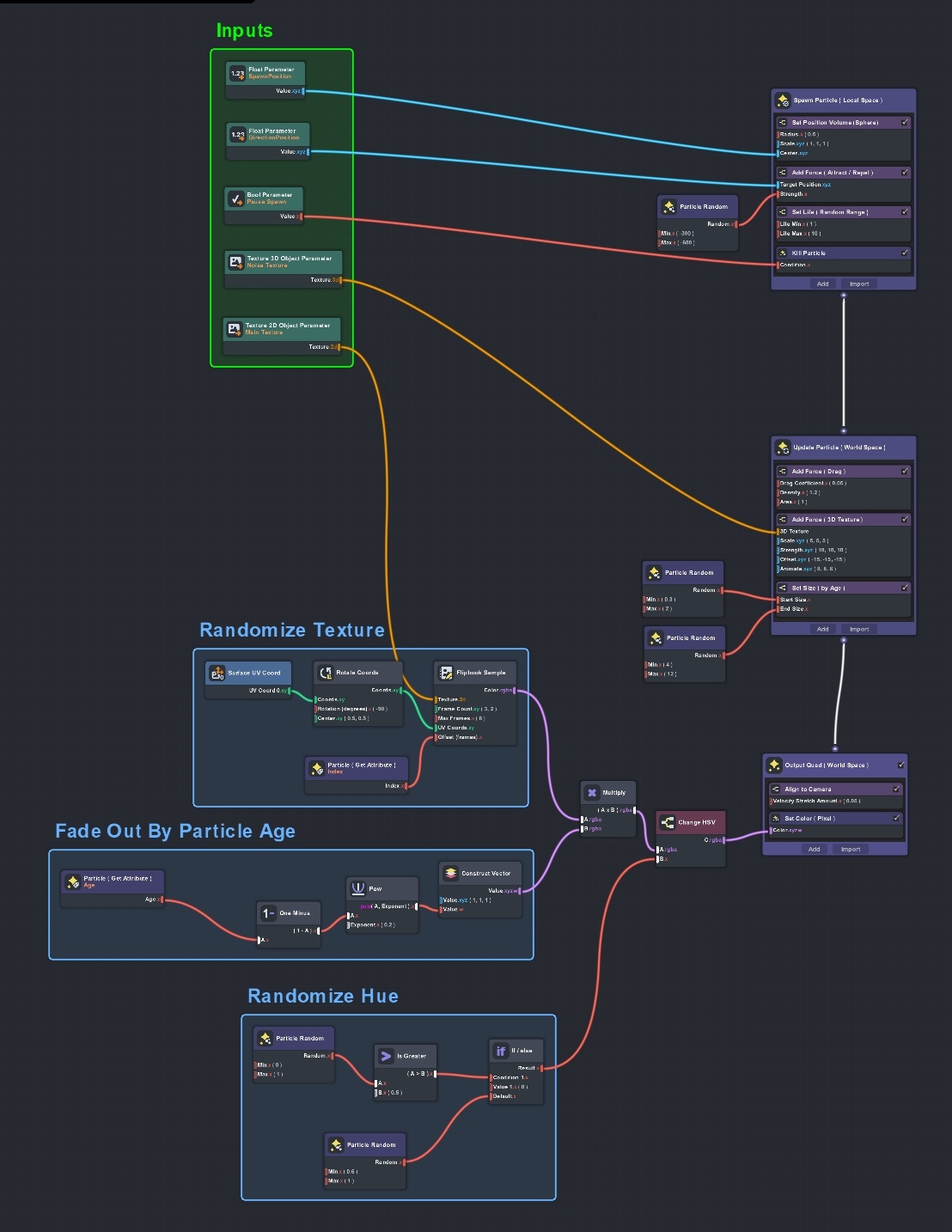 - PauseSpawn: if Determines whether or not a particle should spawn or not (this is set to active when hand tracking is lost)