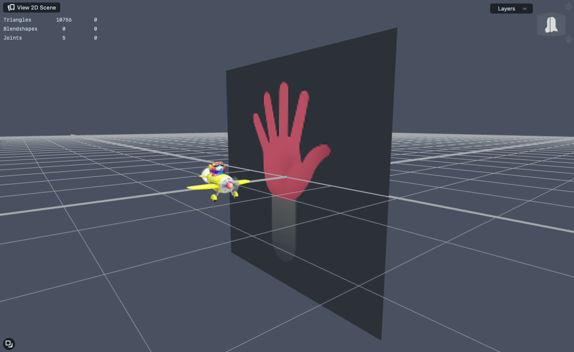 The Airplane object uses a Tween script to rotate around the hand.