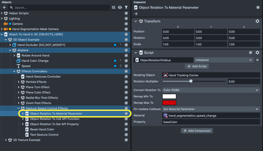 There are a couple more examples using Object Rotation which you can find under the Gesture Speed Control Effects object in the Objects panel. Feel free to play around with these as you did above.