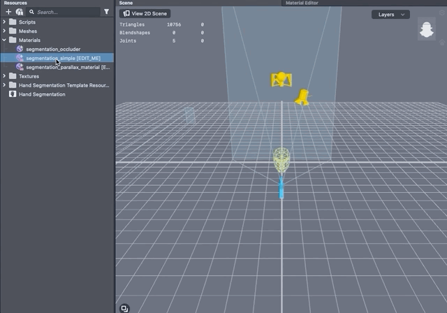 The Hand Segmentation Template let’s you easily segment your hand and replace it with an image or a custom material.