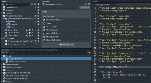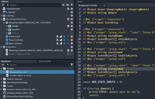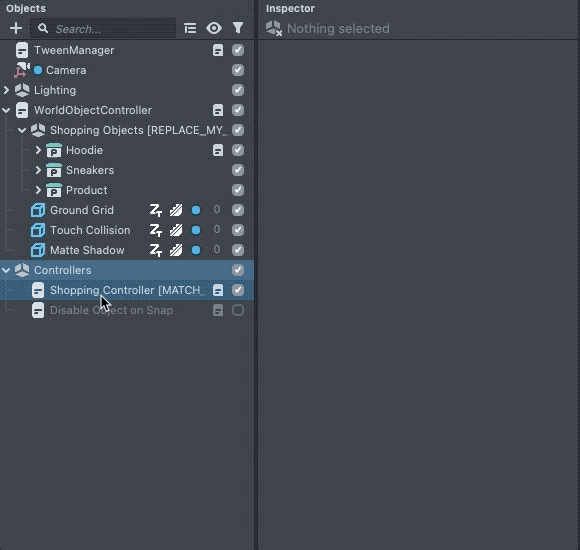 Next, the Lens needs to know what this object should be referred to as. To see this association, select the Shopping Controller objects in the Objects panel, and check out the Inspector panel.