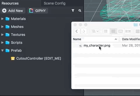 The Cutout Template lets you create a World Lens by importing just a 2D image or animation. A cutout includes movement, scale, rotation, shadow and the ability to always look at the camera. Multiple Cutouts can be added to the Lens allowing you to create a 3D scene with movable 2D objects.