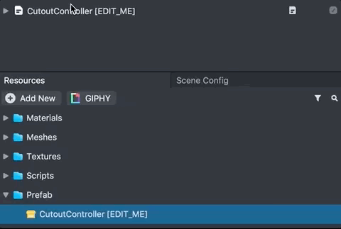 The template supports multiple Cutout Controller objects. To create a new one, right click on the CutoutController object and select Duplicate. Alternatively, you can drag and drop the CutoutController prefab in the Resources panel to the Objects panel.