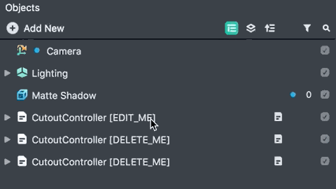 Next, in the Objects panel, select the CutoutController [EDIT_ME] object.