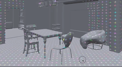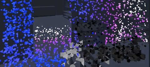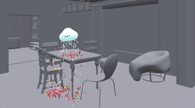 This example works similarly to Depth VFX Collision, in which we use a helper script to send information about the World Mesh to a VFX asset, and then we use the VFX editor to spawn particles on the world.