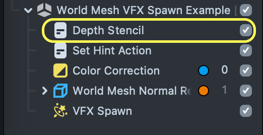 This helper script is called DepthStencil which you can find under the World Mesh VFX Spawn Example [TRY_ME] object.