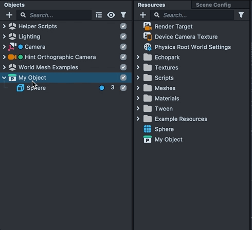 To change the spawning object, first we need to create a prefab from the object that we want to spawn. The easiest way of making a prefab resource is to right click on your object in the Objects panel and then selecting Save as Prefab. As soon as you click you can see the new prefab added to the Resources panel.