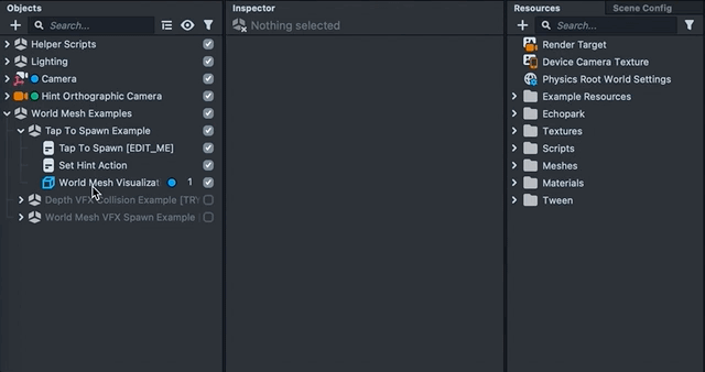 The Simple World Mesh Template showcases different ways you can take advantage of the World Mesh to understand the world around you and add effects that respond to them.