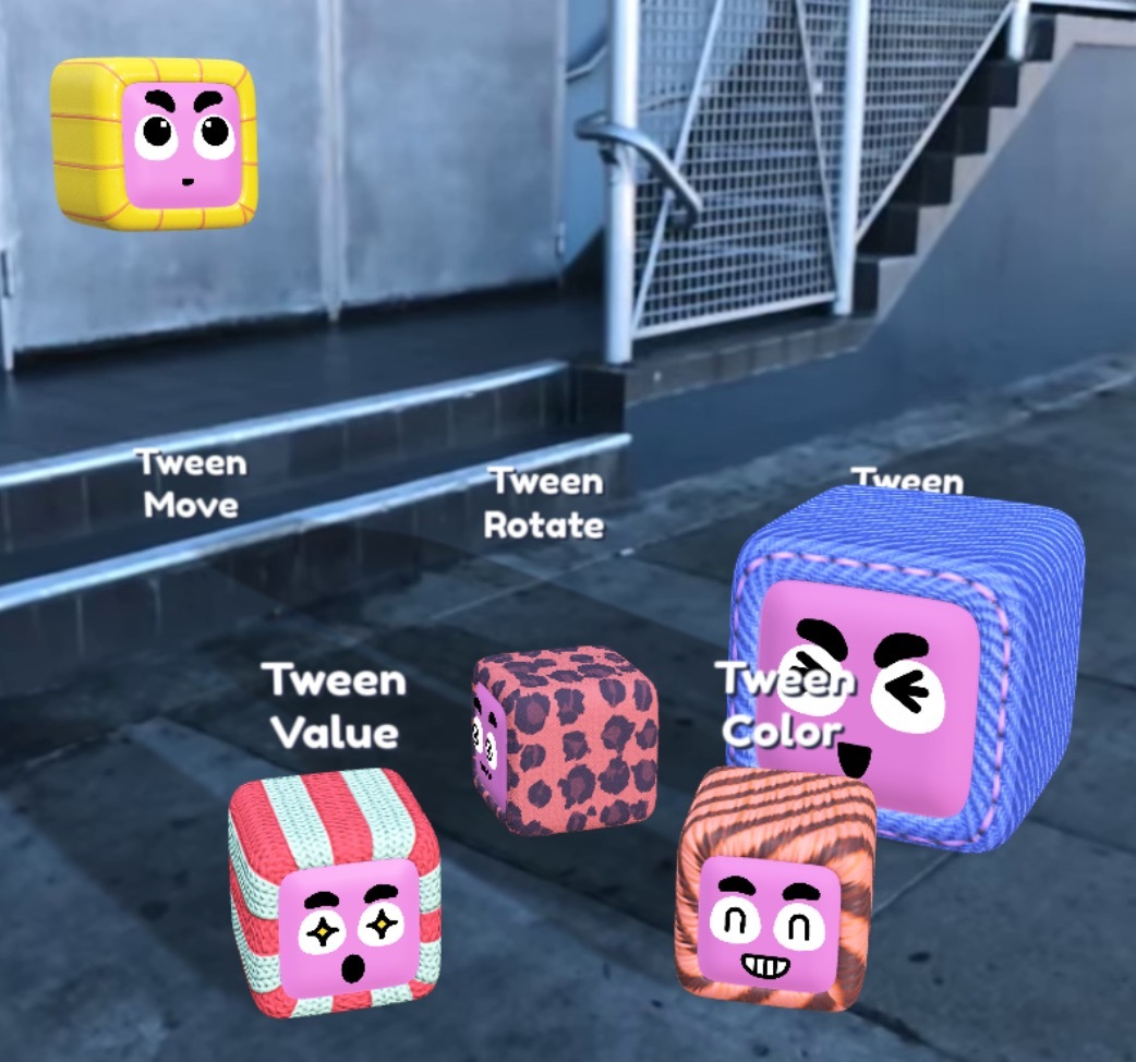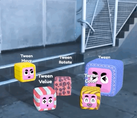 In Lens Studio, you can create Tween animations using the built-in helper scripts--with each helper script taking care of each parameter (e.g. position, scale, rotation, etc.). You can even chain or play these tween animations at the same time with helper scripts to create more advanced animations. For example, you may tween an object's position as well as their scale at the same time in order to create a bouncy objects which squashes when they land on the floor.