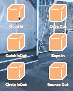The Easing Layout Example has a few UI objects laid out on the screen. Each item will display a scaling animation with the easing function described below when they are clicked.