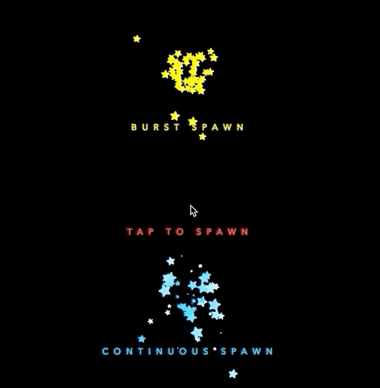 Interactive spawn example showcase a way to create a custom particle spawning.