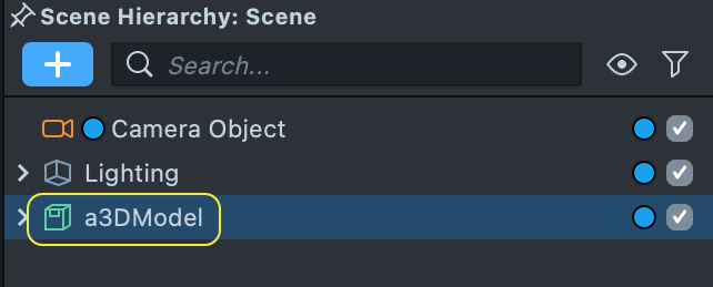 Once the FBX is imported into Lens Studio, you should see it listed in your Scene Hierarchy panel as a new object added to the scene.