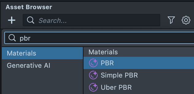 To use your PBR textures in Lens Studio, first import them to the project by dragging them into your Asset Browser panel. Next, create a new PBR material by selecting + -> Material -> PBR in the Asset Browser panel.