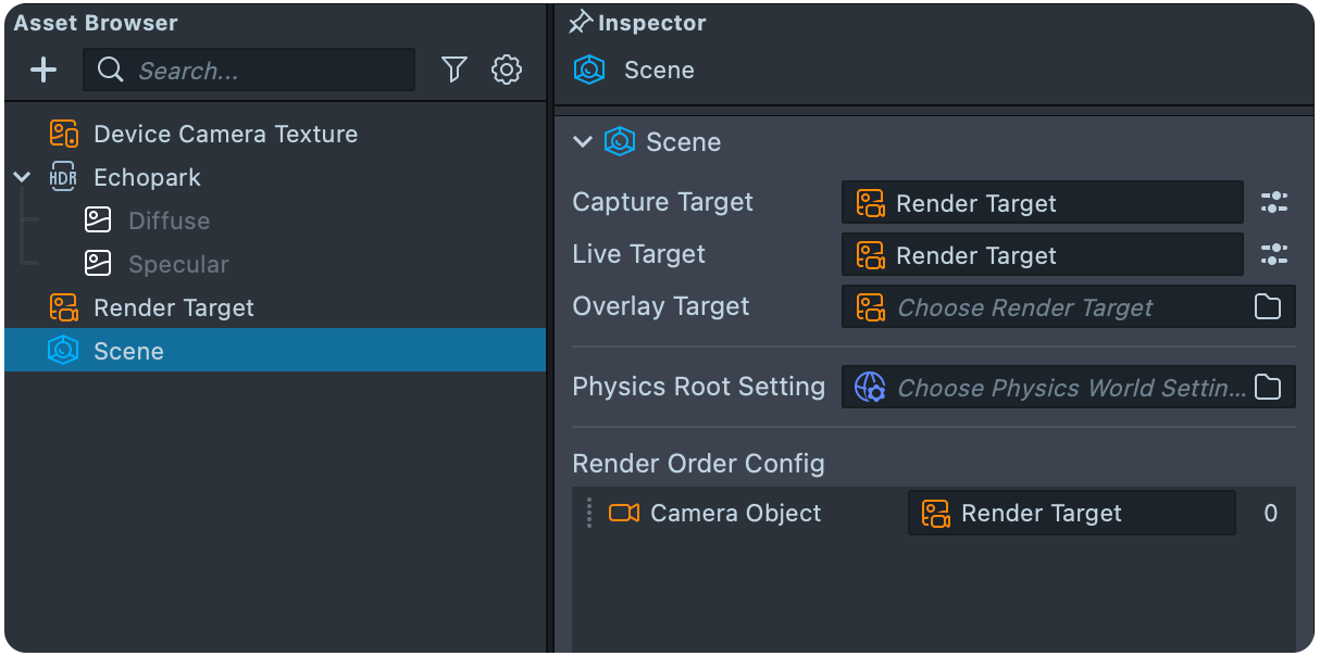 If the asset utilizes cameras, take a look at the Scene Asset to further customize how the assets are used in your Lens. Learn more about Cameras, Render Targets and Layers