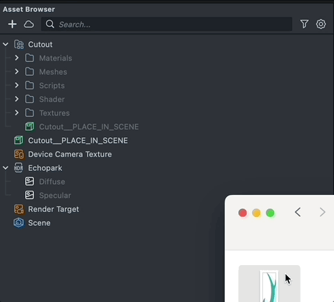The Cutout asset lets you create a World Lens by importing just a 2D image or animation. A cutout includes movement, scale, rotation, shadow and the ability to always look at the camera. Multiple Cutouts can be added to the Lens allowing you to create a 3D scene with movable 2D objects.