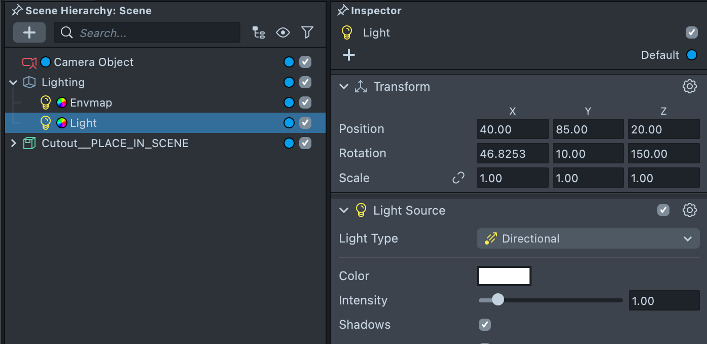 - Shadow: When enabled, the cutout casts a real time shadow on the ground. It is derived from the silhouette of the 2D image