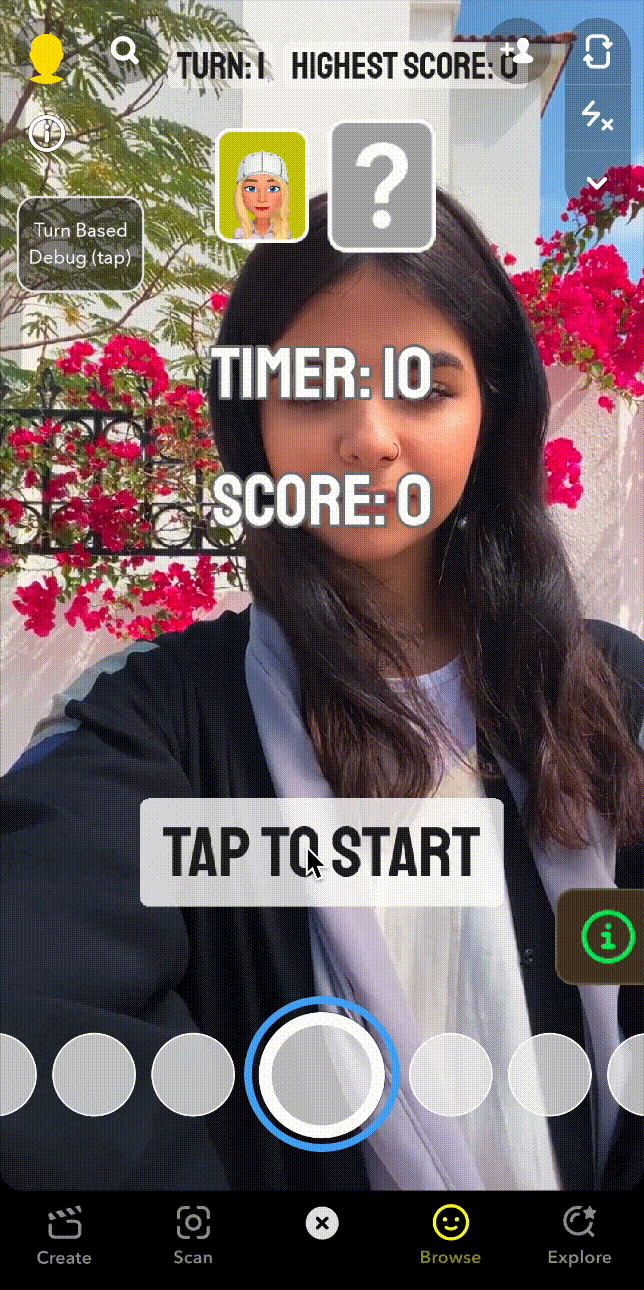 TapButton.ts: Detects taps, starts the game on the first tap, and increments the per-turn score.