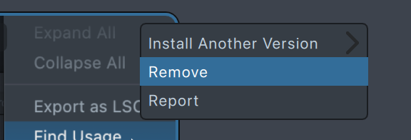 To uninstall a plugin that was installed through the Asset Library, click the three-dot icon in the corner menu and select the Remove button, which is located in the same menu as the Install another version option.