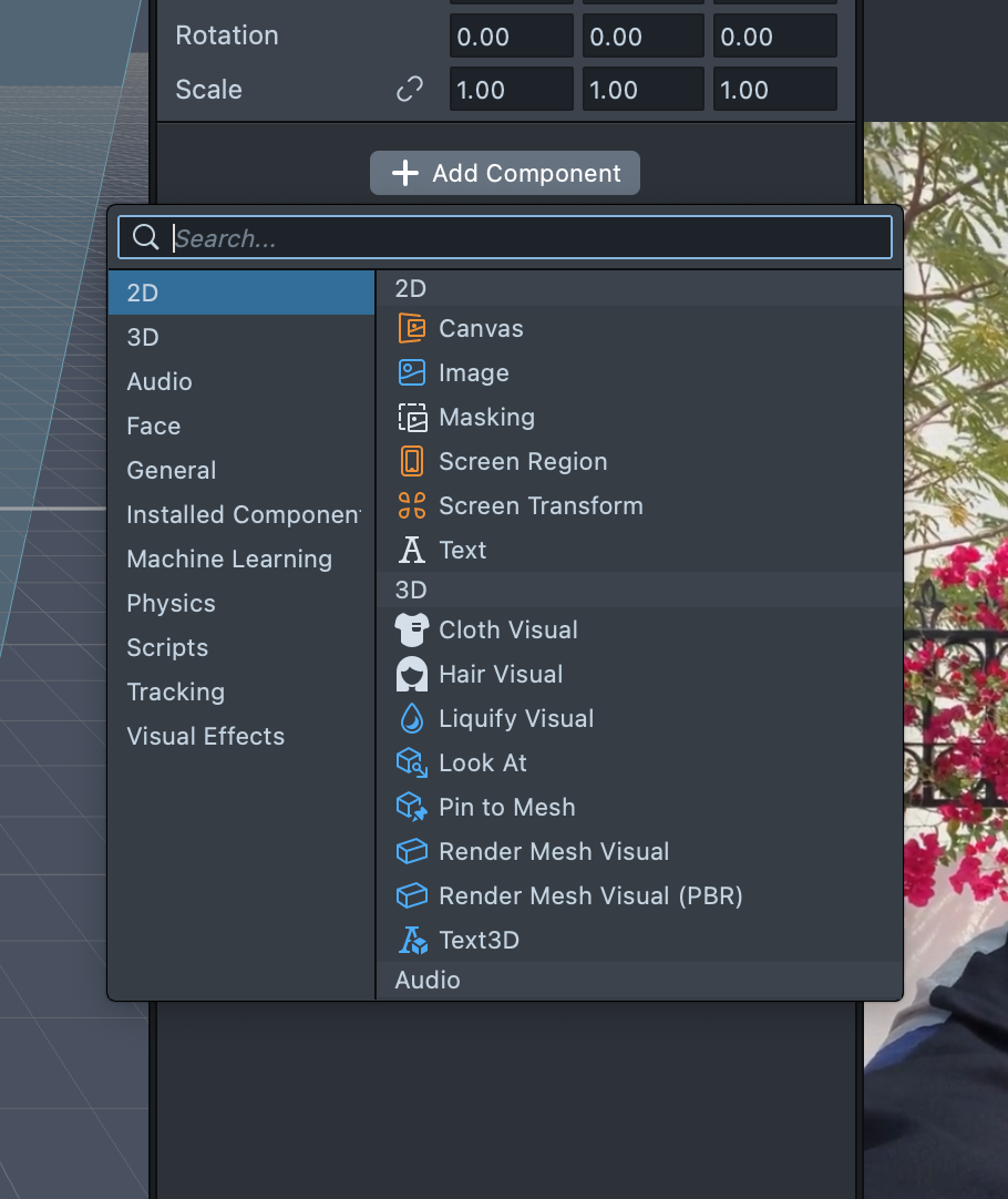 + Add Componentbutton in theInspectorpanel of any scene object. - Scene Object Presets: These can be accessed by clicking the