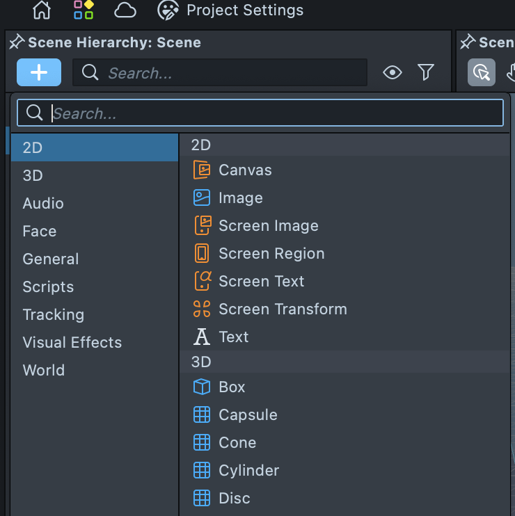 +button in the top-left corner of theScene Hierarchypanel. - Asset Presets: These can be found by clicking the
