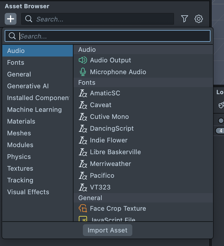 - Asset Library: These are plugins that are downloadable like other assets in Lens Studio.