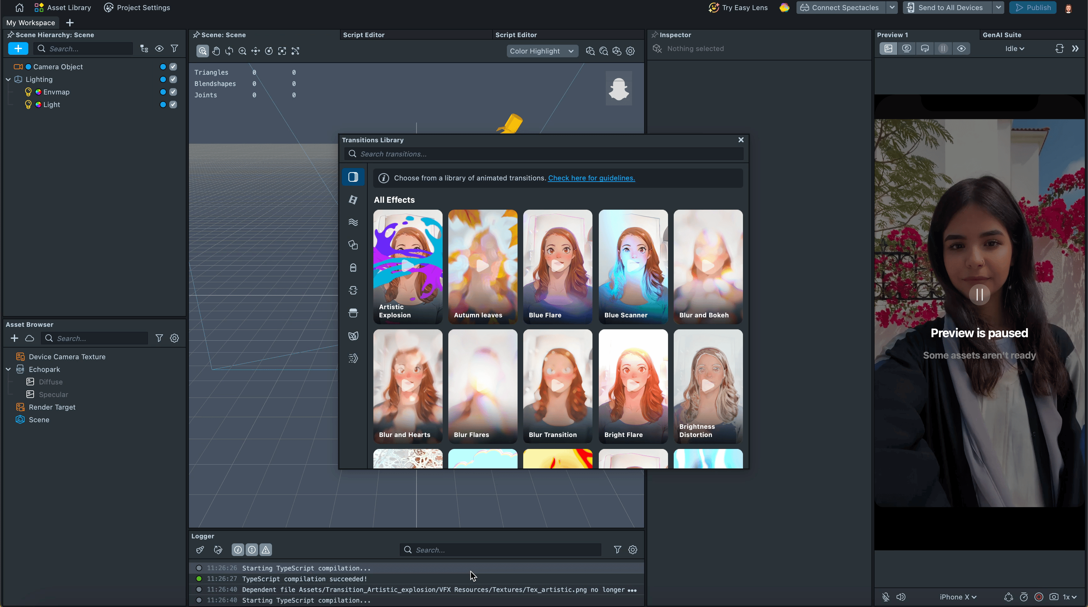This plugin is a library of VFX transitions, with the ability to preview existing transitions, search among them, and install them into a project without the need for additional settings.