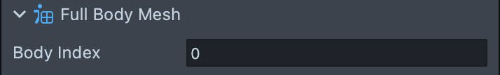 Body Index decides which tracked body the mesh will correspond to. Note that it should match the index on the Object Tracking 3D component that contains the Body Mesh object in scene.