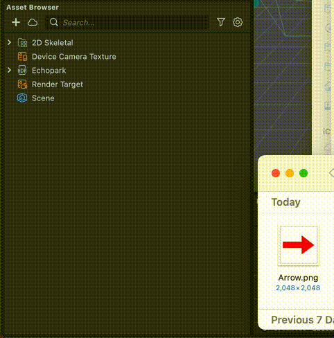 To use the template, we’ll first need to import the images we want to attach to the joints. To do this, drag and drop a PNG, JPG, or GIF into the Asset Browser panel from your computer.