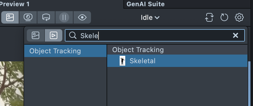 Then, in the drop-down at the top of the Preview panel, choose the Skeletal video under the category "Object Tracking".