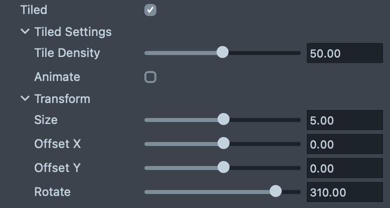 - Animate: If enabled, the tile pattern will play a scrolling animation