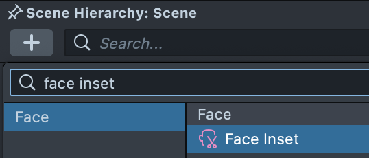 To create a Face Inset object, first click the "+" button in the Scene Hierarchy panel. Then, select Face Effects -> Face Inset.