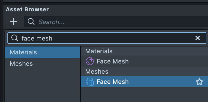 Alternatively, you can add the resource alone by pressing + > Face Mesh in the Asset Browser panel.