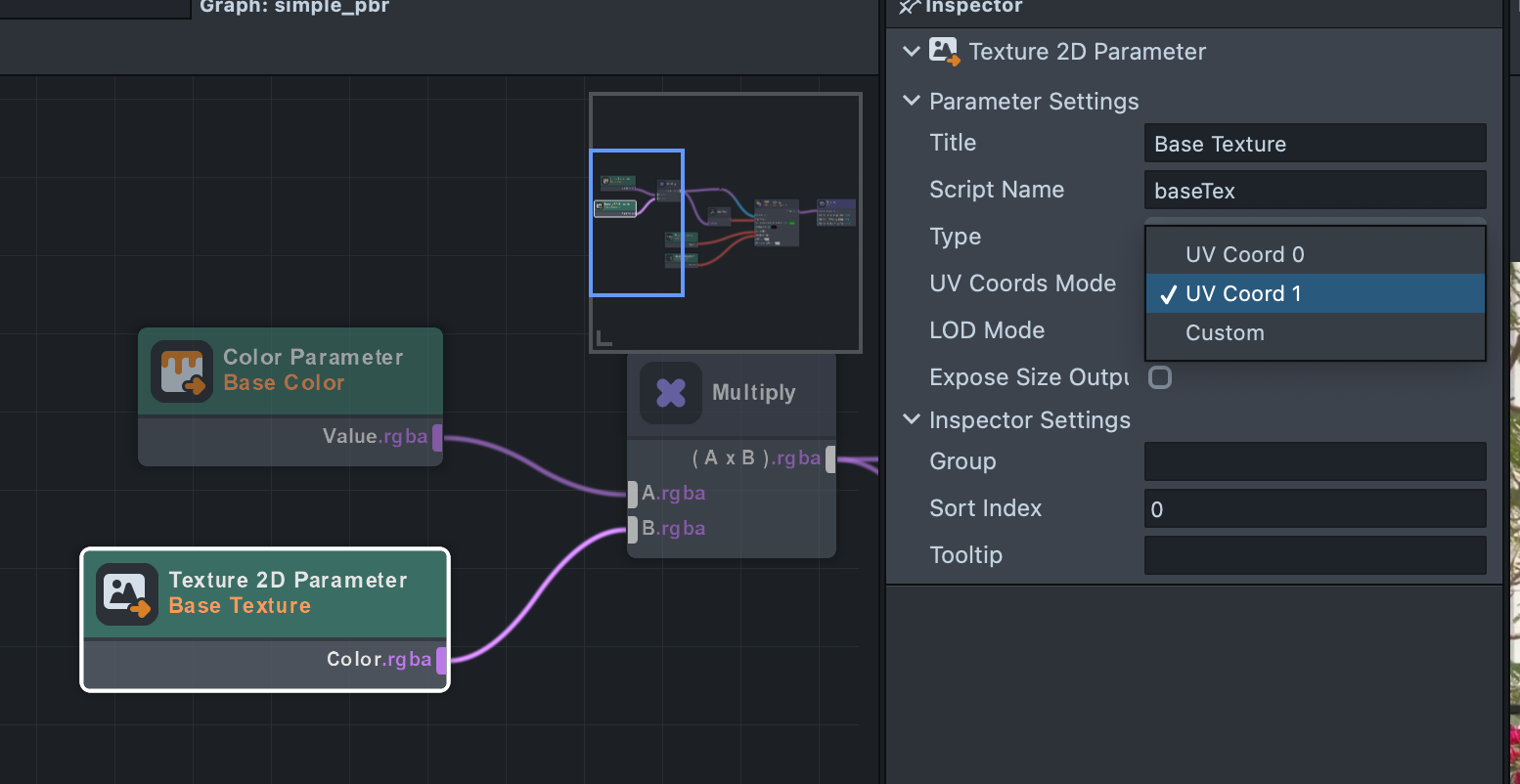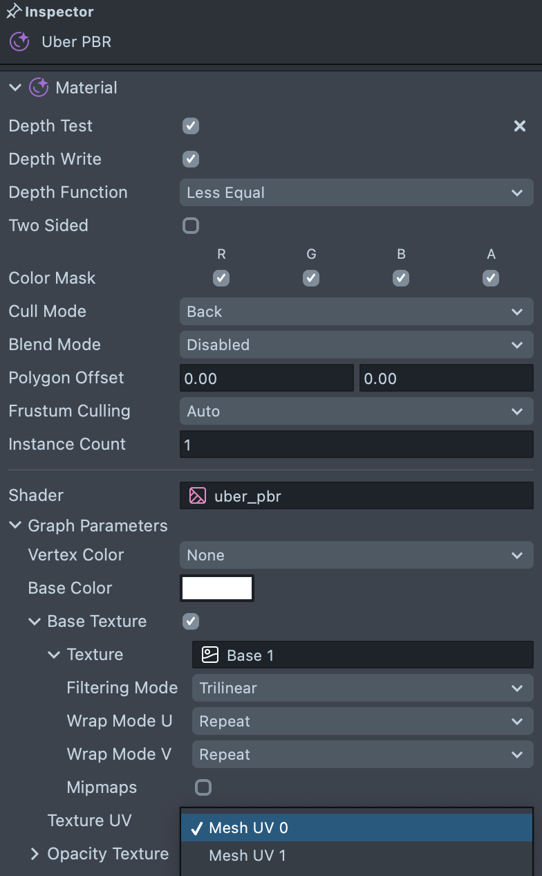 Asset Browser -> Uber PBR) which allows you to set the UV coordinate a texture is using in the material's setting.